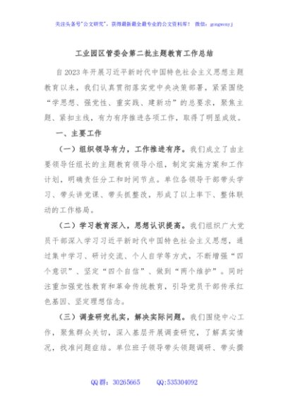 / 工业园区管委会第二批主题教育工作总结
