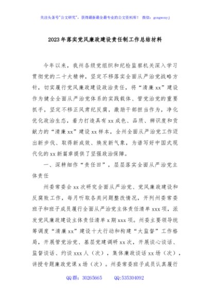 / 2023年落实党风廉政建设责任制工作总结材料