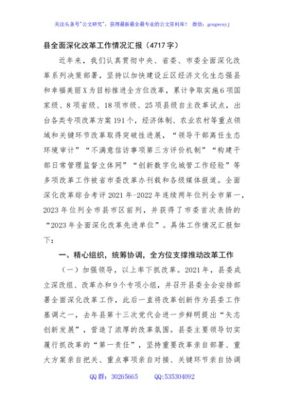 / 县全面深化改革工作情况汇报
