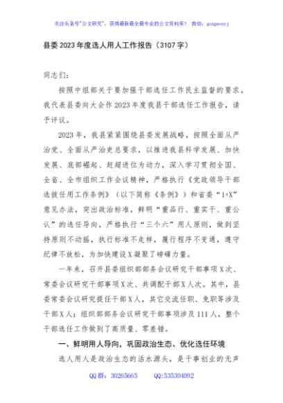 / 县委2023年度选人用人工作报告