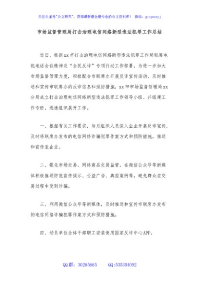 / 市场监督管理局打击治理电信网络新型违法犯罪工作总结