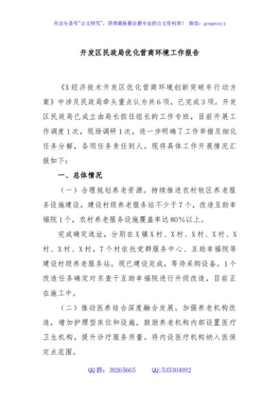/ 开发区民政局优化营商环境工作报告