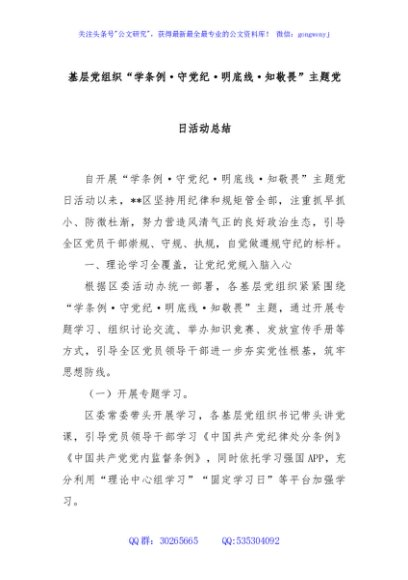 / 基层党组织“学条例·守党纪·明底线·知敬畏”主题党日活动总结