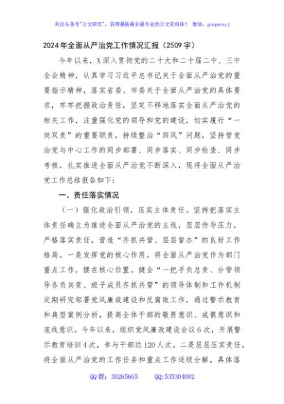 / 2024年全面从严治党工作情况汇报(2509字)