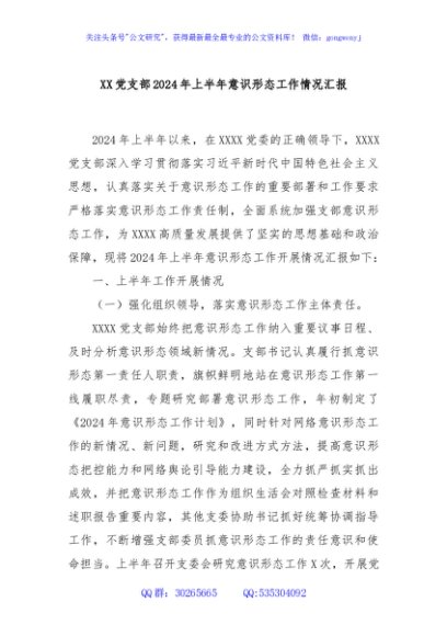/ XX党支部2024年上半年意识形态工作情况汇报