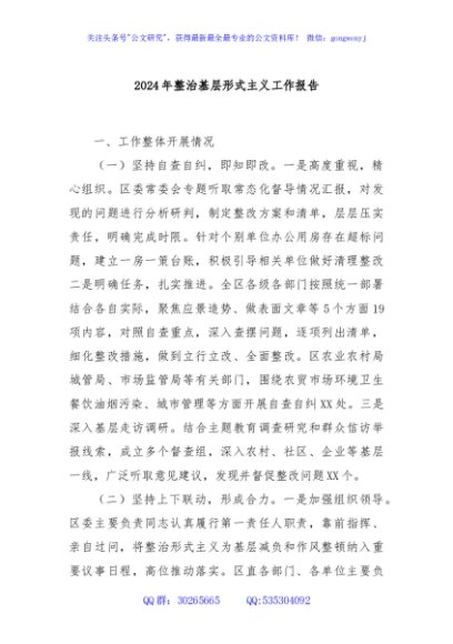 / 2024年整治基层形式主义工作报告