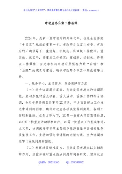 / 市政府办公室工作总结