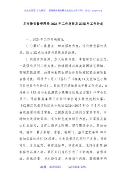 / 县市场监督管理局2024年工作总结及2025年工作计划
