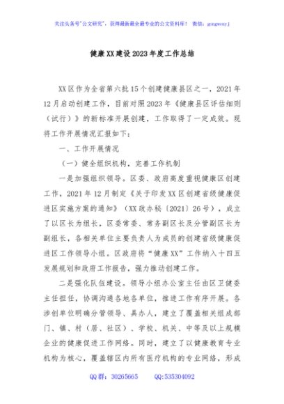 健康XX建设2023年度工作总结