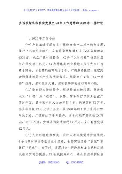 / 乡国民经济和社会发展2023年工作总结和2024年工作计划