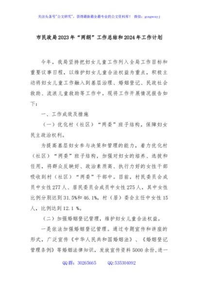 / 市民政局2023年“两纲”工作总结和2024年工作计划