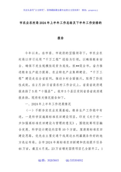 / 市农业农村局2024年上半年工作总结及下半年工作安排的报告