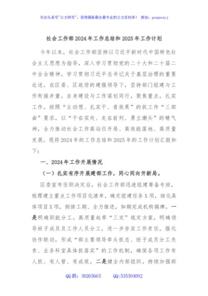 / 社会工作部2024年工作总结和2025年工作计划