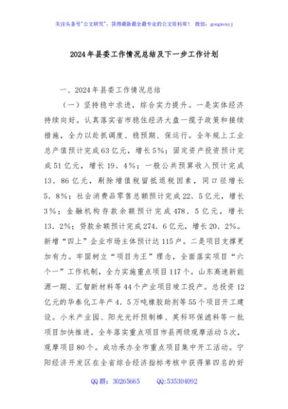 / 2024年县委工作情况总结及下一步工作计划
