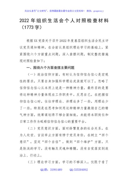 / 2022年组织生活会办公室普通干部个人对照检查材料(政治信仰等6方面)