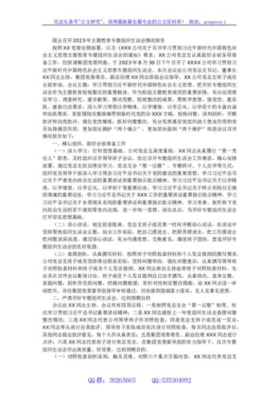 / 国企召开2023年主题教育专题组织生活会情况报告