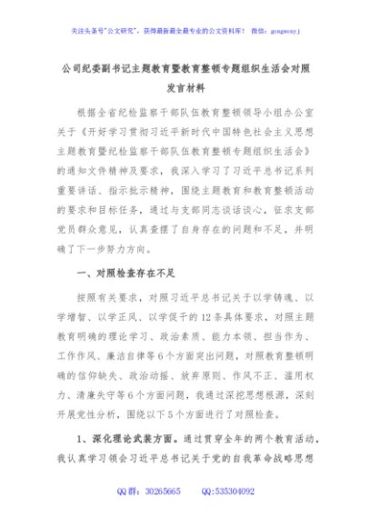 / 公司纪委副书记主题教育暨教育整顿专题组织生活会对照发言材料