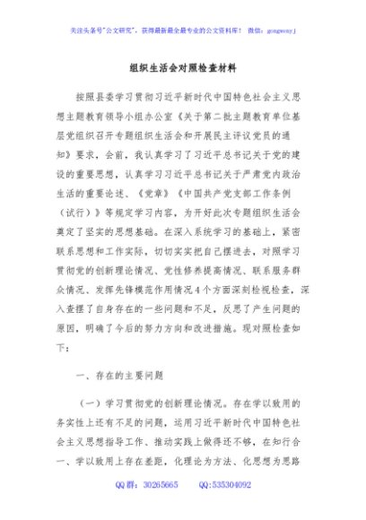 (综合)主题教育专题组织生活会对照检查材料起草指南