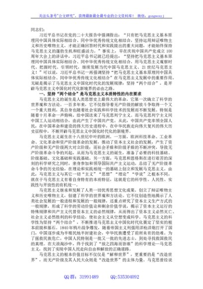 / 党课讲稿:坚持“两个结合”,不断开辟马克思主义发展新境界