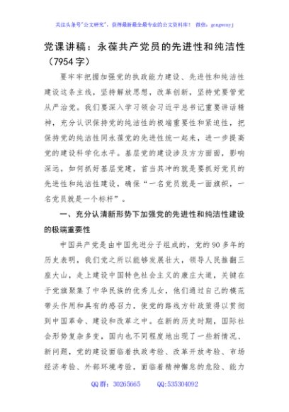 / 党课讲稿:永葆共产党员的先进性和纯洁性