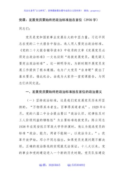 / 党课:发展党员要始终把政治标准放在首位