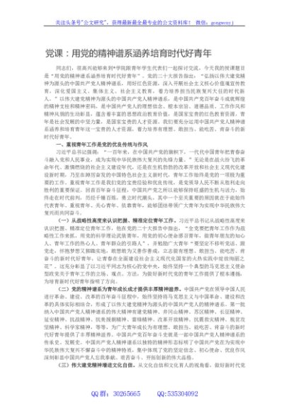 / 党课:用党的精神谱系涵养培育时代好青年
