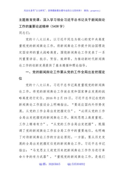 / 主题教育党课:深入学习领会关于新闻舆论工作的重要论述精神