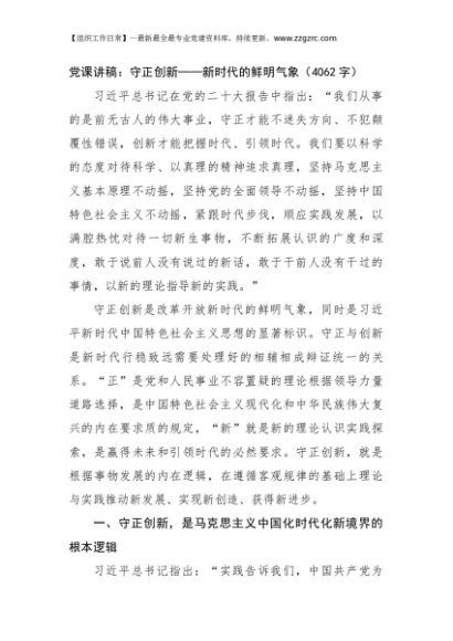 / 党课讲稿:守正创新——新时代的鲜明气象