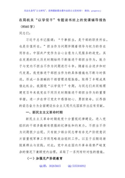 / 在局机关“以学促干”专题读书班上的党课辅导报告