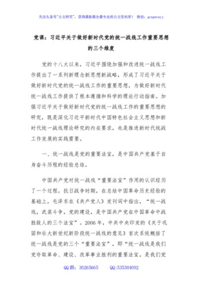 / 党课:习近平关于做好新时代党的统一战线工作重要思想的三个维度