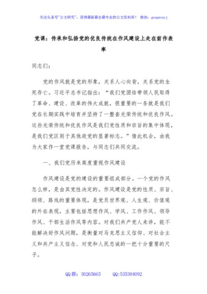 / 党课:传承和弘扬党的优良传统在作风建设上走在前作表率