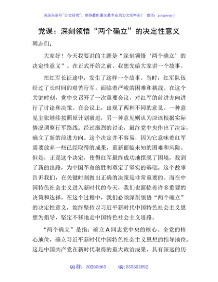 / 党课:深刻领悟“两个确立”的决定性意义