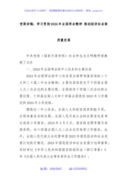 / 党课讲稿:学习贯彻2024年全国两会精神 推动经济社会高质量发展