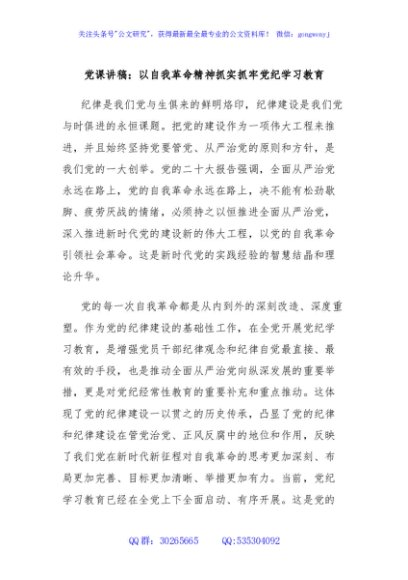 / 党课讲稿:以自我革命精神抓实抓牢党纪学习教育