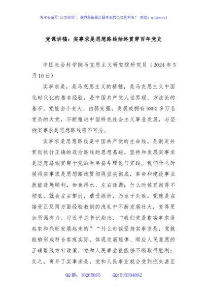 / 党课讲稿:实事求是思想路线始终贯穿百年党史