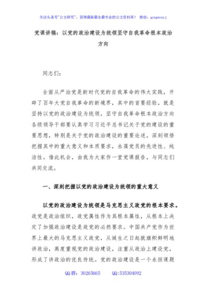 / 党课讲稿:以党的政治建设为统领坚守自我革命根本政治方向