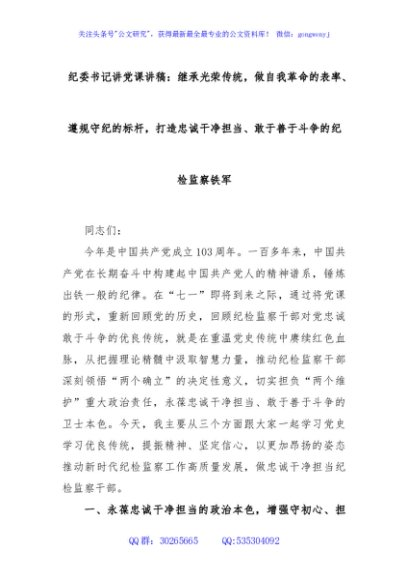 / 纪委书记讲党课讲稿:继承光荣传统,做自我革命的表率、遵规守纪的标杆,打造忠诚干净担当、敢于善于斗争的纪检监察铁军