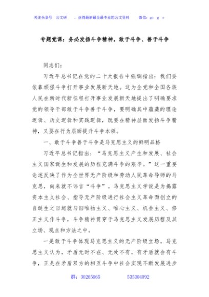 / 专题党课:务必发扬斗争精神,敢于斗争、善于斗争