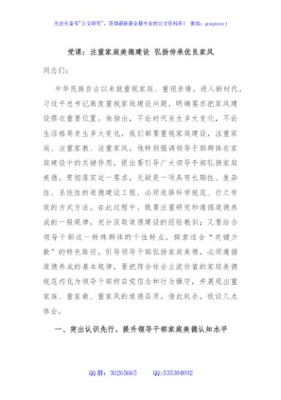 / 党课:注重家庭美德建设 弘扬传承优良家风