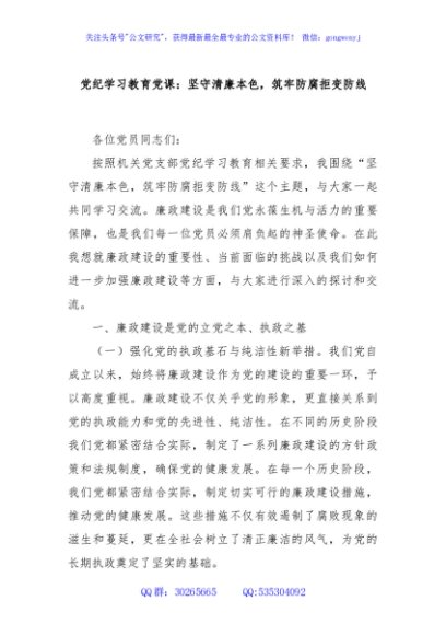 / 党纪学习教育党课:坚守清廉本色,筑牢防腐拒变防线