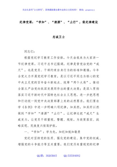 / 纪律党课:“学知”、“清源”、“止行”,做纪律建设忠诚卫士