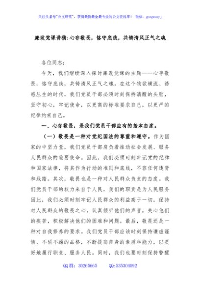/ 廉政党课讲稿:心存敬畏,恪守底线,共铸清风正气之魂