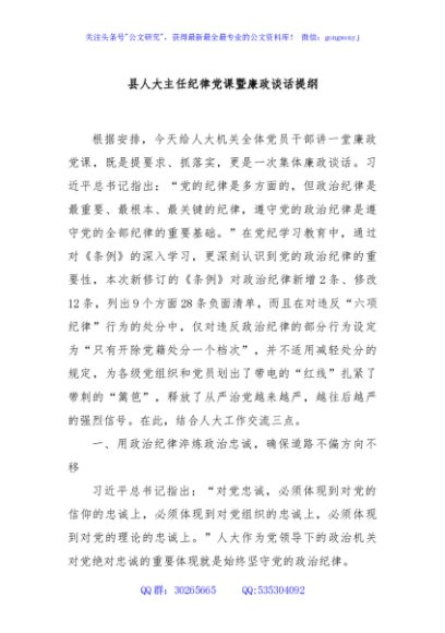 / 县人大主任纪律党课暨廉政谈话提纲