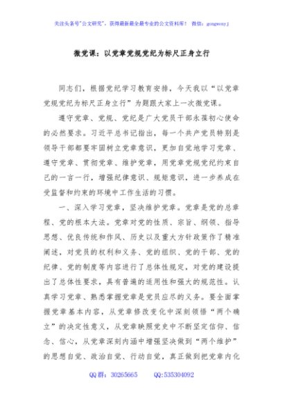 微党课:以党章党规党纪为标尺正身立行