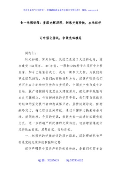 / 七一党课讲稿:重温光辉历程,继承光辉传统,在党纪学习中强化作风,争做先锋模范