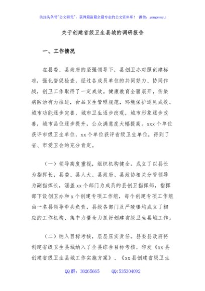 / 关于创建省级卫生县城的调研报告