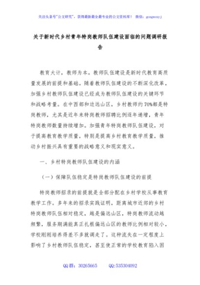 / 关于新时代乡村青年特岗教师队伍建设面临的问题调研报告