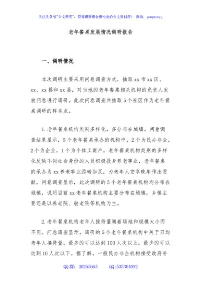 / 老年餐桌发展情况调研报告