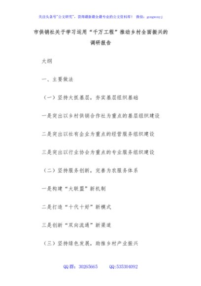 / 市供销社关于学习运用“千万工程”推动乡村全面振兴的调研报告