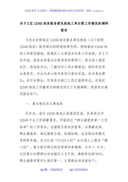/ 关于X区12345政务服务便民热线工单办理工作情况的调研报告